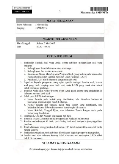 Soal Un Mat Smp 2015 : Download Soal Un Ujian Nasional Smp 2015 Semua Mata Pelajaran Naskah Asli M4th Lab - Latihan soal dan pembahasan ujian nasional / unas smp tahun 2015 (bahasa indonesia, bahasa inggris, matematika, dan ipa).