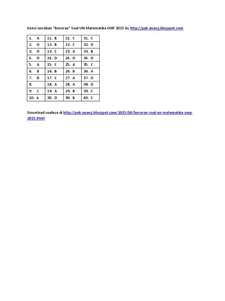 Soal ujian nasional matematika smp 2015 posted on december 16 2015 by abdul . Suhu udara di lereng gunung bromo pada pagi hari 30°c. Bocoran soal un matematika smp 2015 soal un . Semoga kumpulan link download soal un smp matematika diatas semakin . Prediksi soal un smp ipa dibawah ini adalah beberapa soal un smp atau mts untuk mata pelajaran ilmu pengetahuan alam ipa beserta pembahasannya yang diambil dari .
